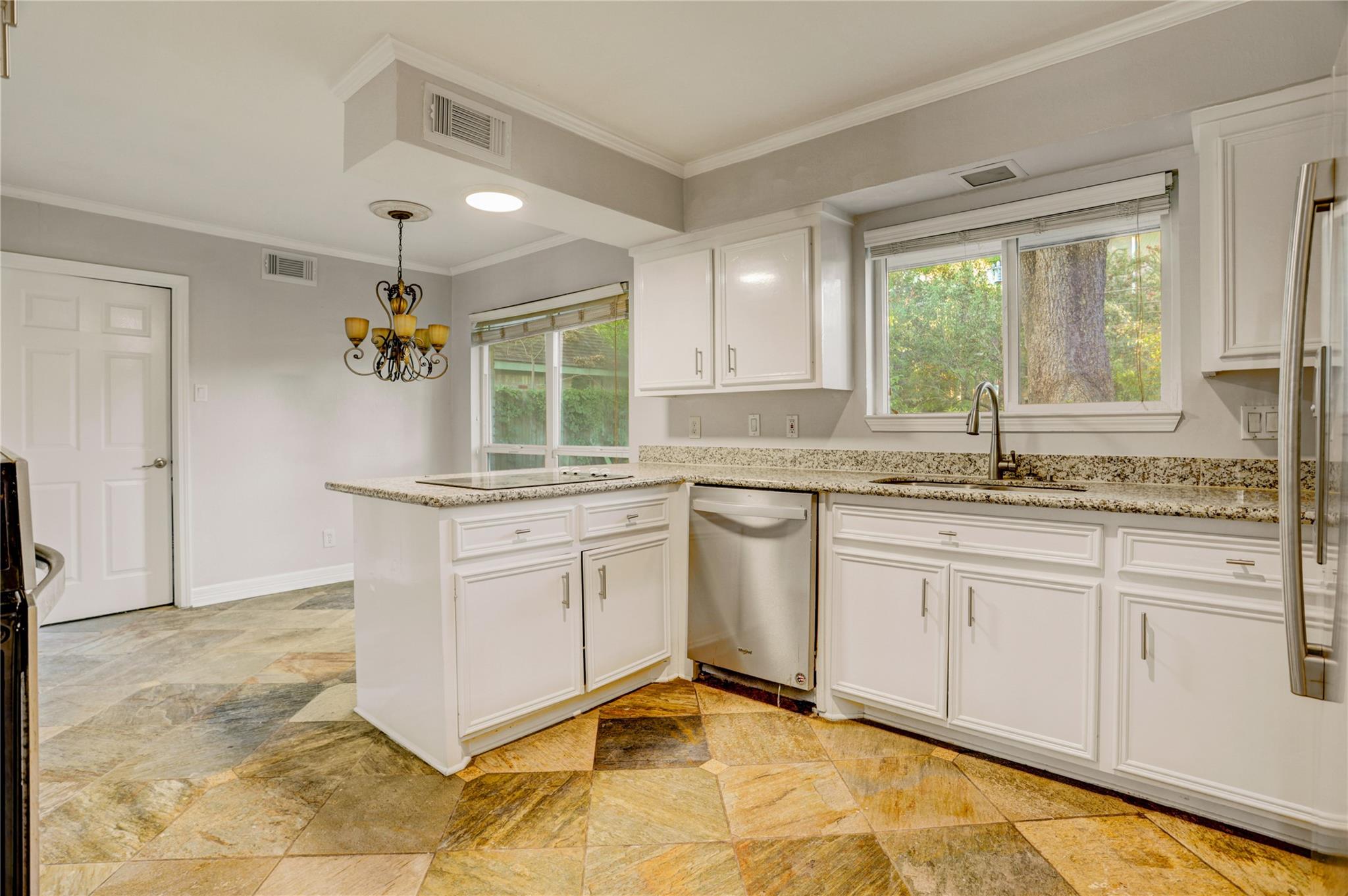 Zoned to Rummel Creek / Memorial / Memorial. Large lot with huge back yard and mature trees. Covered circular drive. Updated 2018 with granite counters and travertine and slate flooring. Garage was converted to gameroom. Roof replaced recently. Selling As-Is.